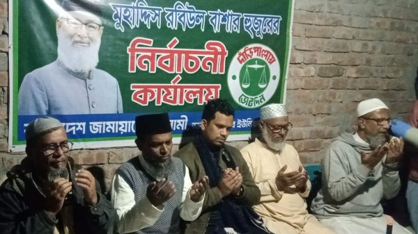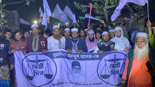 আশাশুনি সদর বাজারে দাঁড়িপাল্লা প্রতিকের মিছিল ও নির্বাচনী অফিস উদ্বোধন