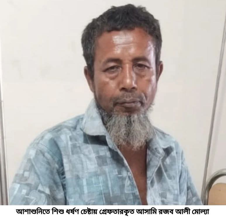 সাতক্ষীরা জেলা আশাশুনি উপজেলাতে ৩য় শ্রেণিতে পড়ুয়া শিশু ছাত্রীকে ধর্ষণ চেষ্টার ঘটনায় থানায় মামলা হয়েছে। জনগণ ধর্ষণ চেষ্টাকারী রজব আলী মোল্যাকে গনপিটুনি দিয়ে পুলিশে সোপর্দ্ধ করেছে। সোমবার (৯ মার্চ) উপজেলার আনুলিয়া ইউনিয়নের নাংলা গ্রামে এ ঘটনা ঘটেছে।