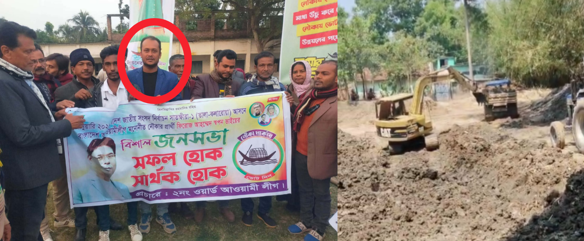 সাতক্ষীরা জেলার কলারোয়া উপজেলার ১১ নং দেয়াড়া ইউনিয়নে এক নেতার বেপরোয়া কর্মকাণ্ডে অতিষ্ঠ হয়ে উঠেছে এলাকাবাসী। আইন-কানুনের তোয়াক্কা না করে ক্ষমতার দাপট দেখিয়ে সলিমপুর উত্তর খানপাড়া এলাকা থেকে দীর্ঘদিন ধরে অবৈধভাবে মাটি ও বালু উত্তোলন করার অভিযোগ উঠেছে স্থানীয় যুবলীগ নেতা মোঃ বাপ্পি খানের বিরুদ্ধে। এই অবৈধ কর্মকাণ্ডের ফলে এলাকার কৃষি জমি, রাস্তাঘাট ও পরিবেশ মারাত্মক হুমকির মুখে পড়েছে।