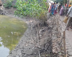 কালিগঞ্জের হোগলায় ভেঙ্গেপড়া পুকুরপাড়ে ১০০ ফুট পাইলিং কাজের উদ্বোধন