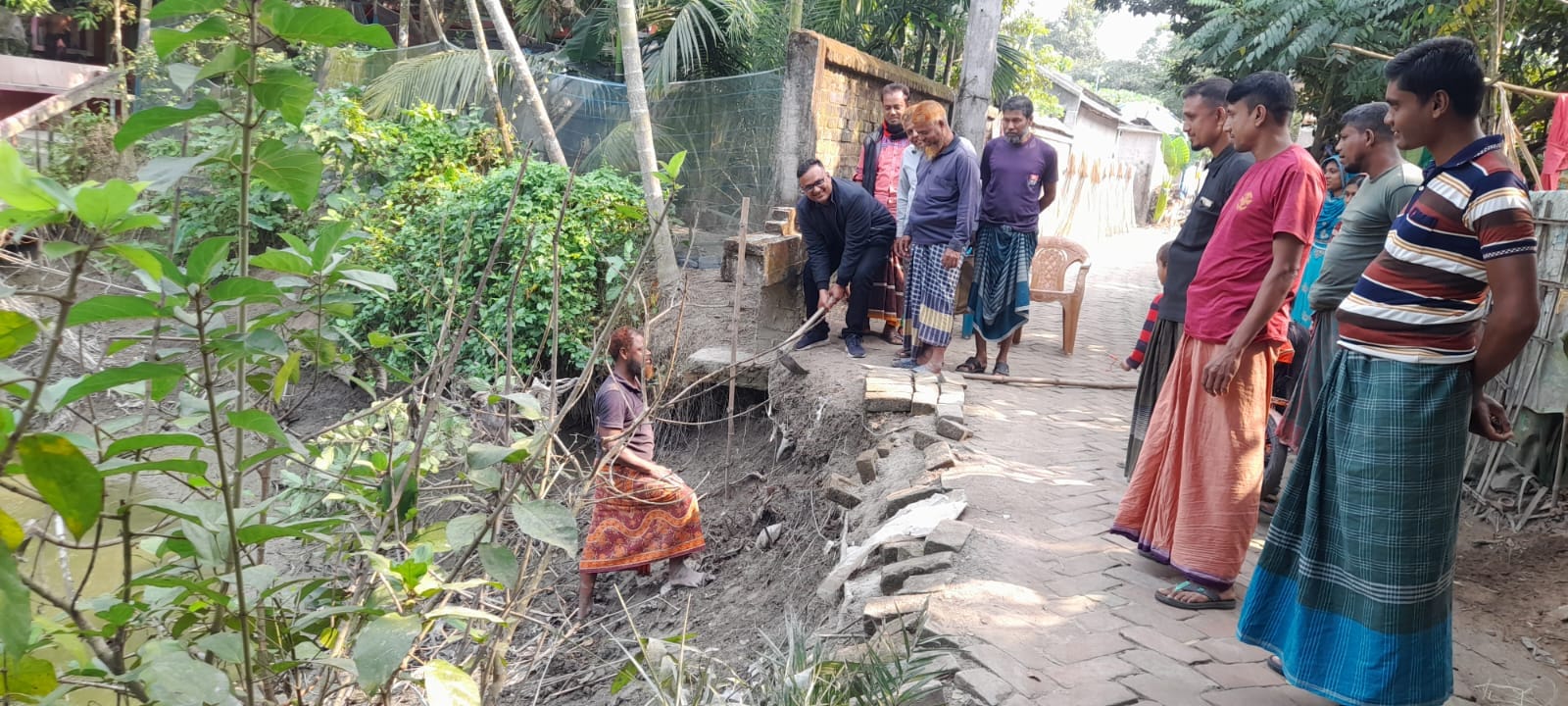 সাতক্ষীরার কালিগঞ্জ উপজেলার হোগলা গ্রামে ভেঙ্গেপড়া পুকুরপাড়ের জরাজীর্ণ অংশে ১০০ ফুট পাইলিং কাজের উদ্বোধন করা হয়েছে।