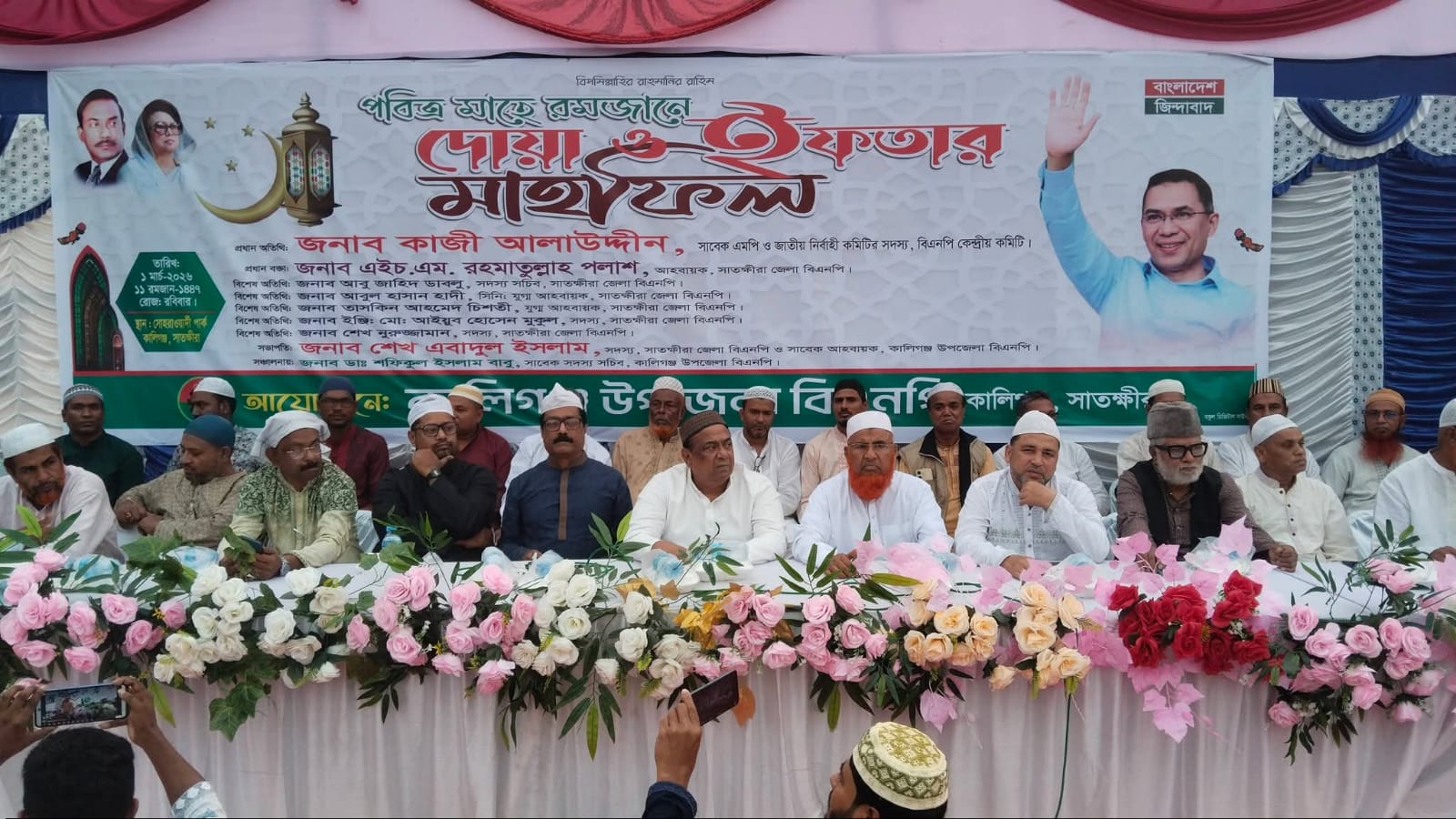 সাতক্ষীরার কালিগঞ্জে বাংলাদেশ জাতীয়তাবাদী দল (বিএনপি) নেতা-কর্মী, সমর্থক ও সাধারণ রোজাদারদের সম্মানে আলোচনা সভা, দোয়া ও ইফতার মাহফিল অনুষ্ঠিত হয়েছে। অনুষ্ঠানের সার্বিক সহযোগিতায় ছিলেন সাবেক সংসদ সদস্য ও বিএনপির জাতীয় নির্বাহী কমিটির সদস্য কাজী আলাউদ্দীন।