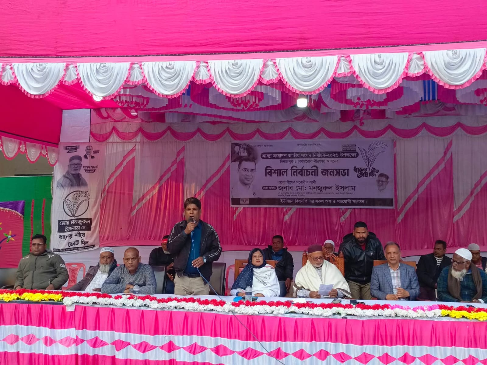জনসভায় প্রধান অতিথি হিসেবে উপস্থিত ছিলেন আসন্ন ত্রয়োদশ জাতীয় সংসদ নির্বাচন–২০২৬ এ দিনাজপুর–১ (বীরগঞ্জ–কাহারোল) আসনে বিএনপি মনোনীত ধানের শীষ প্রতীকের প্রার্থী জনাব মো. মনজুরুল ইসলাম।