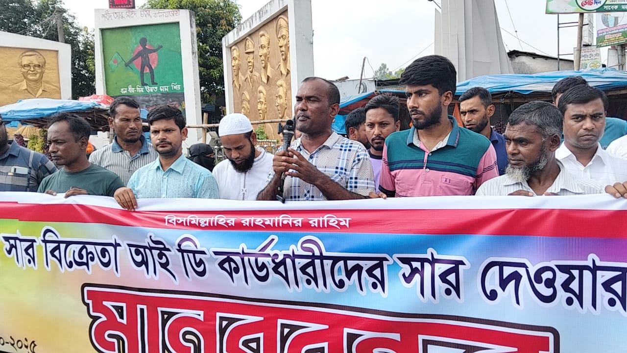 রবিবার (১২ অক্টোবর) দুপুর ১২ টায় বালিয়াডাঙ্গী চৌরাস্তায় খুচরা সার বিক্রেতা হিসেবে নিবন্ধিত আইডি ধারীদের সার বরাদ্দ দেওয়ার দাবিতে খুচরা সার বিক্রেতা অ্যাসোসিয়েশনের অব বাংলাদেশের আয়োজনে মানববন্ধন কর্মসূচীতে এ ঘোষণা দেন।