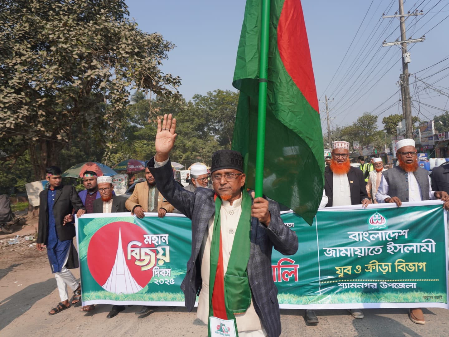 মহান বিজয় দিবস উপলক্ষে সাতক্ষীরার শ্যামনগরে বাংলাদেশ জামায়াতে ইসলামীর উদ্যোগে বর্ণাঢ্য র্যালি অনুষ্ঠিত হয়েছে। মঙ্গলবার (১৬ ডিসেম্বর) সকাল ১০টায় এ র্যালির আয়োজন করা হয়। মহান মুক্তিযুদ্ধের শহীদদের প্রতি গভীর শ্রদ্ধা জানিয়ে ও বিজয়ের চেতনাকে ধারণ করে এ কর্মসূচিতে বিপুলসংখ্যক নেতাকর্মী অংশগ্রহণ করেন।