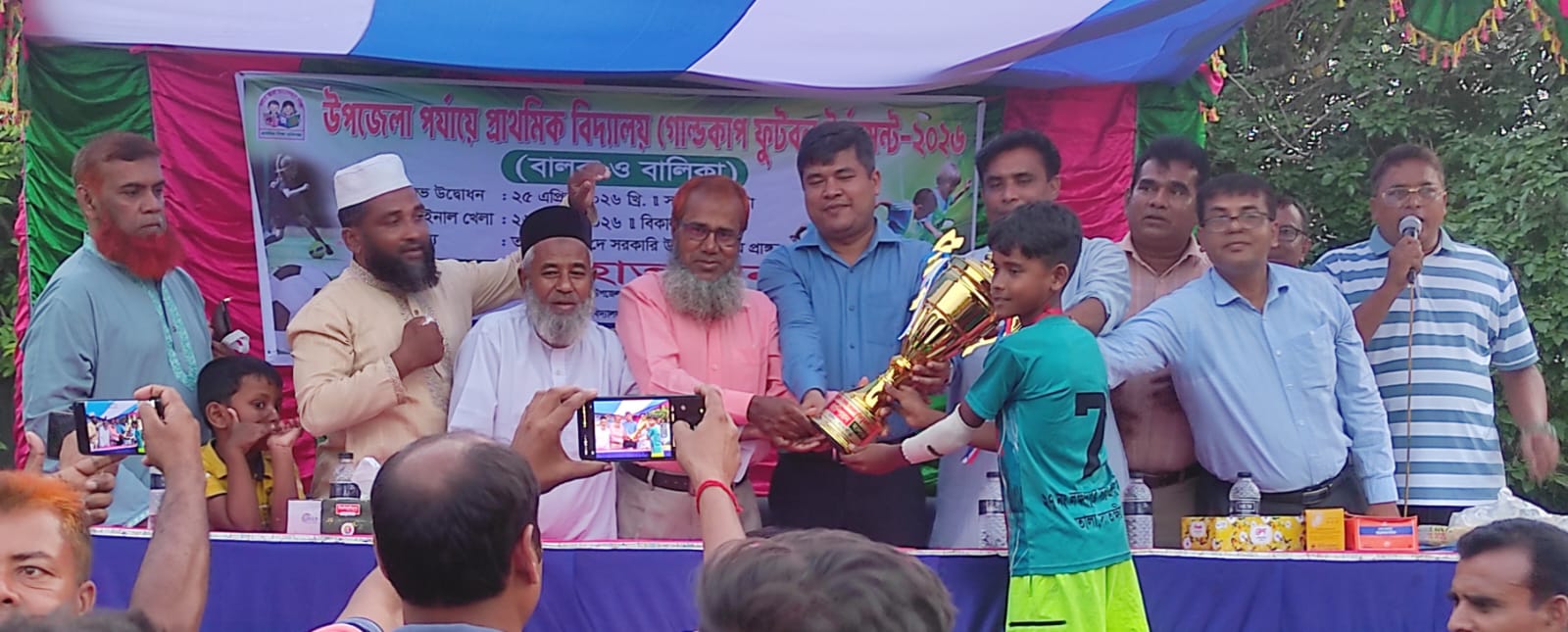 সাতক্ষীরার তালা উপজেলায় উৎসবমুখর পরিবেশে উপজেলা শিক্ষা অফিসের আয়োজনে 'উপজেলা পর্যায়ের প্রাথমিক বিদ্যালয় গোল্ডকাপ ফুটবল টুর্নামেন্ট-২০২৬ (বালক ও বালিকা) ২৫ ও ২৬ এপ্রিল (শনিবার ও রবিবার) দুই দিনব্যাপী অনুষ্ঠিত হয়।
