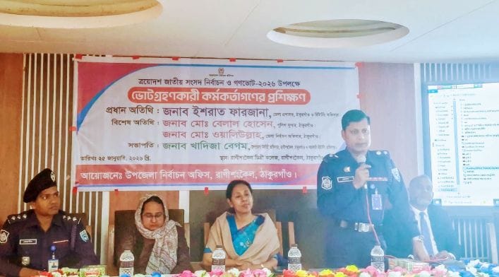 ত্রয়োদশ জাতীয় সংসদ নির্বাচন গণভোট-২০২৬ সুষ্ঠু ও নিরপেক্ষ ভাবে সম্পন্ন করার লক্ষ্যে ভোটগ্রহণকারী কর্মকর্তাদের জন্য প্রশিক্ষণ কর্মশালা অনুষ্ঠিত হয়। রবিবার- ২৫ জানুয়ারি-২০২৬