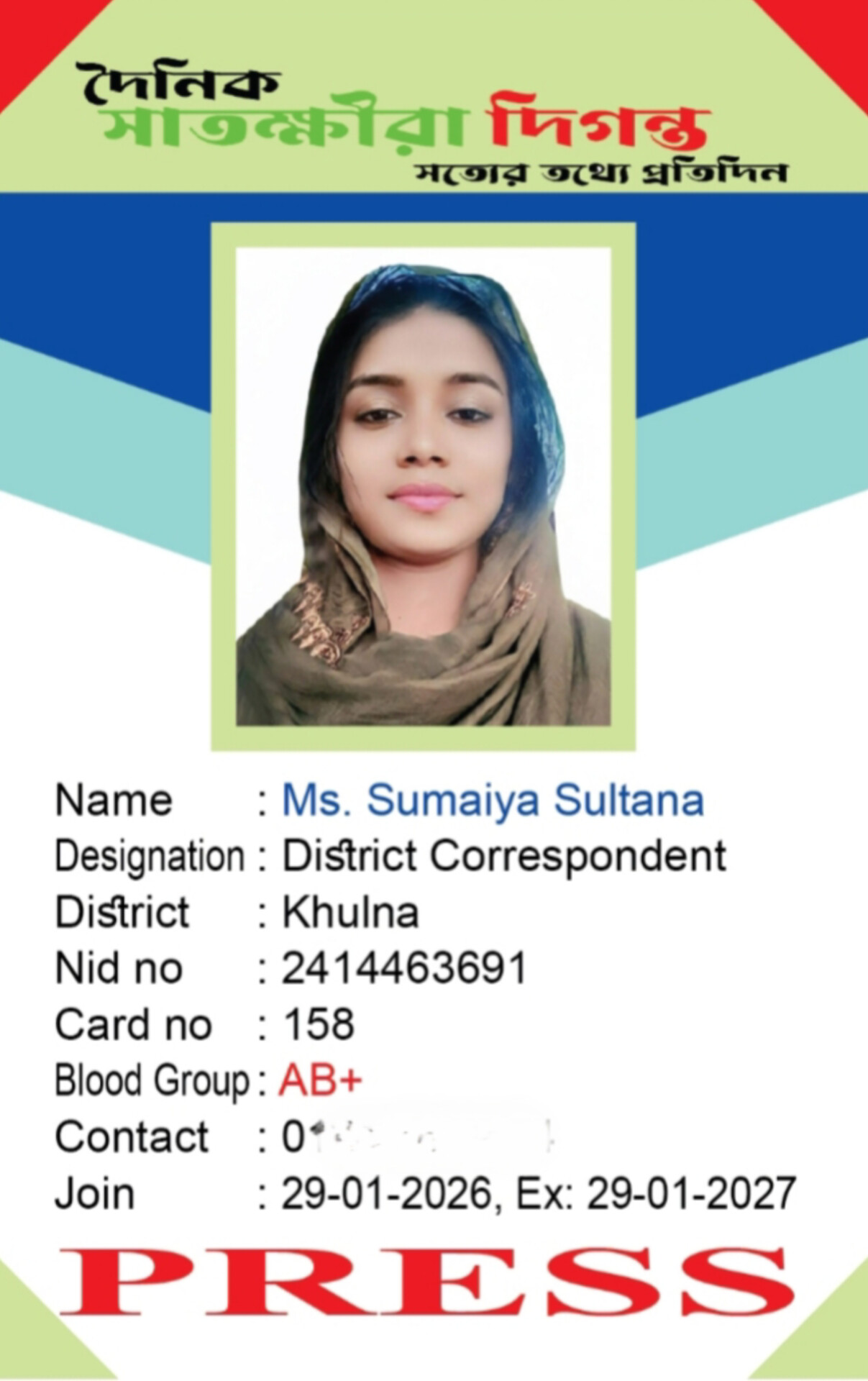 পেশাদারিত্ব ও অঙ্গীকার নবনিযুক্ত জেলা প্রতিনিধি সুমাইয়া সুলতানা তার প্রতিক্রিয়ায় জানান, "দৈনিক সাতক্ষীরা দিগন্তের মতো একটি গতিশীল প্রতিষ্ঠানে যুক্ত হতে পেরে আমি গর্বিত। খুলনার উন্নয়ন, সম্ভাবনা এবং জনদুর্ভোগের চিত্রগুলো নিরপেক্ষভাবে তুলে ধরাই হবে আমার মূল অগ্রাধিকার। আমি আমার পেশাগত দায়িত্ব পালনে জেলা প্রশাসন, সংবাদকর্মী ও সাধারণ মানুষের সহযোগিতা কামনা করছি।"