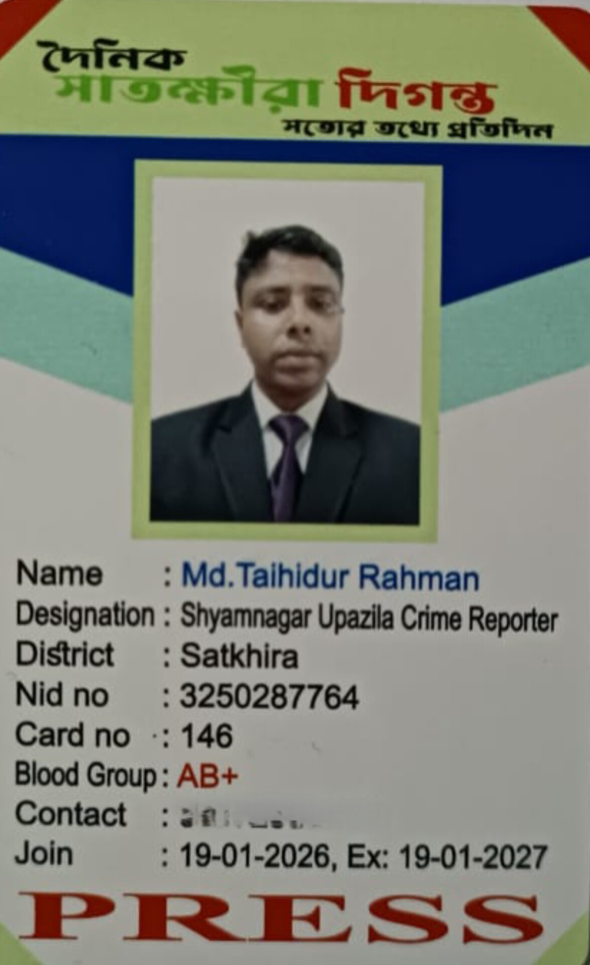 সাতক্ষীরা জেলার জনপ্রিয় ও বস্তুনিষ্ঠ সংবাদ পরিবেশনে প্রতিশ্রুতিবদ্ধ নিউজ পোর্টাল 'দৈনিক সাতক্ষীরা দিগন্ত' (ডিএসডি টিভি)-তে নতুন সংবাদকর্মী হিসেবে যুক্ত হয়েছেন তৌহিদুর রহমান। তাকে সাতক্ষীরা জেলার শ্যামনগর উপজেলা ক্রাইম রিপোর্টার হিসেবে আনুষ্ঠানিকভাবে নিয়োগ প্রদান করা হয়েছে।