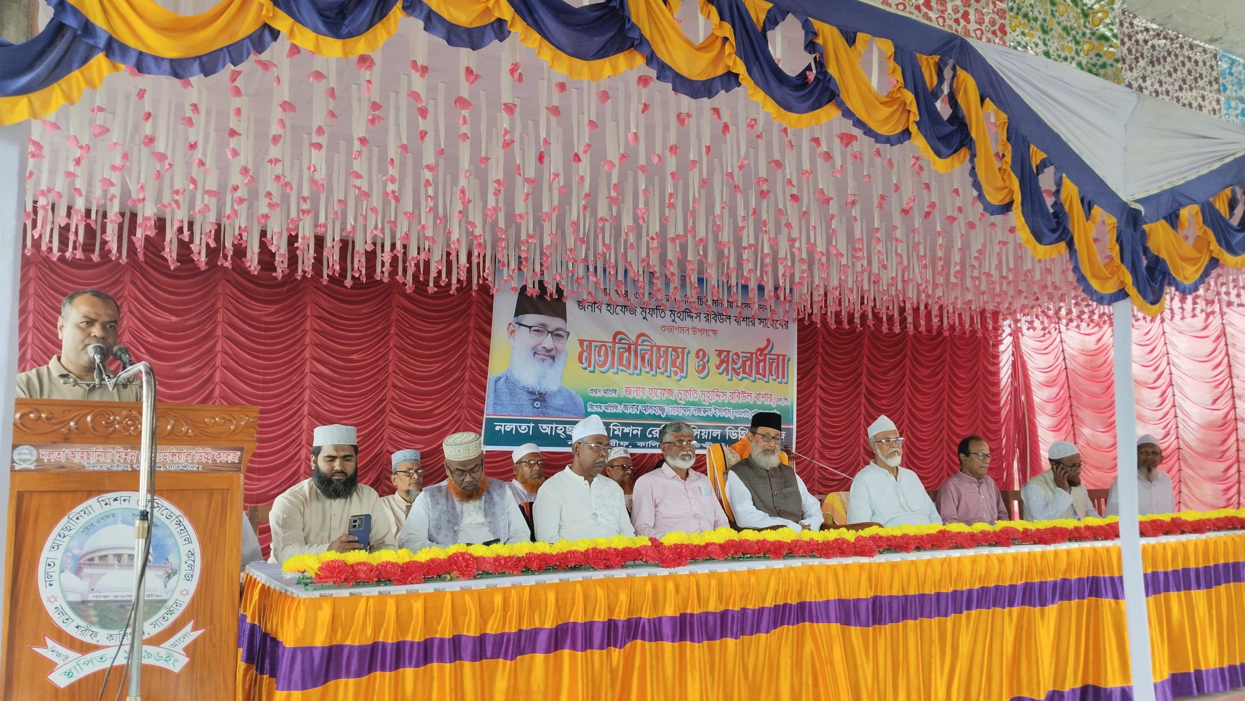 সাতক্ষীরা জেলার কালিগঞ্জ উপজেলার নলতা আহ্ছানিয়া মিশন রেসিডেন্সিয়াল কলেজের হলরুমে ৯ মার্চ সোমবার সকাল ১০ টায় সাতক্ষীরা- ৩আসরেন নব নির্বাচিত সংসদ সদস্য হাফেজ মুফতি মুহাদ্দিস রবিউল বাশারকে সাথে মতবিনিময় ও সংবর্ধনা অনুষ্ঠিত হয়েছে। উক্ত সভায় কলেজের ভারপ্রাপ্ত অধ্যক্ষ মোহাম্মদ আব্দুল্লাহ’র সভাপতিত্বে প্রধান অতিথি হিসেবে বক্তব্য রাখেন, সংসদ সদস্য হাফেজ মুহাদ্দিস রবিউল বাশার। বিশেষ অতিথি হিসেবে ছিলেন, নলতা কলেজের সভাপতি মোঃ নজরুল ইসলাম, নলতা কেন্দ্রীয় আহ্ছানিয়া মিশনের সাধারণ সম্পাদক ডাঃ মোঃ নজরুল ইসলাম, ডাঃ আবুল কালাম আজাদ, বাংলাদেশ জামায়াতে ইসলামীর কালিগঞ্জ উপজেলা শাখার আমীর মোঃ আব্দুল ওহাব, বাংলাদেশ জামায়াতে ইসলামীর নলতা ইউনিয়ন আমীর মাস্টার আকবার হোসেন, নলতা মাধ্যমিক বিদ্যালয়ের শিক্ষক মাওঃ আনারুল ইসলাম, মিশন কর্মকর্তা চৌধুরী আমজাদ হোসেন, মোঃ মাহমুদ আলম প্রমূখ। অনুষ্ঠান পরিচালনা করেন, কলেজের শিক্ষক মানস চক্রবর্তী।