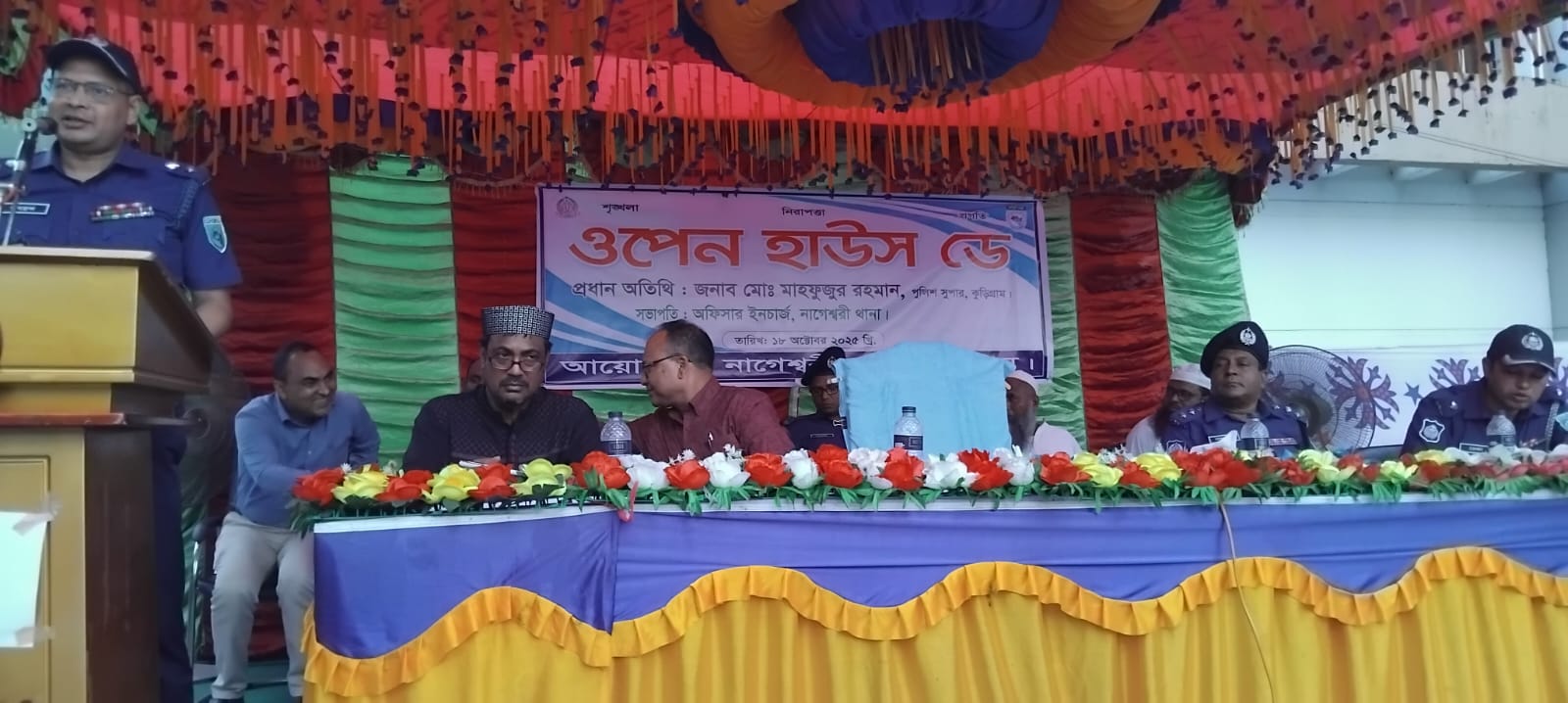 নাগেশ্বরী থানা কর্তৃক ওপেন হাউজ ডে২০২৫ আয়োজনে প্রধান অতিথি হিসেবে উপস্থিত ছিলেন জনাব মোঃ মাহফুজুর রহমান পুলিশ সুপার কুড়িগ্রাম, উক্ত অনুষ্ঠানে সভাপতিত্ব করেন : নাগেশ্বরী থানার অফিসার্স ইনচার্জ মোঃ রেজাউল করিম রেজা,নাগেশ্বরী সরকারি কলেজের অধ্যক্ষ ডা: মো: আনোয়ার হোসেন মন্ডল, এছাড়াও উপস্থিত ছিলেন নাগেশ্বরী উপজেলা বিএনপি'র আহ্বায়ক অধ্যাপক মো: গোলাম রসূল রাজা, মাওলানা মোঃ আব্দুল মান্নান আমির নাগেশ্বরী উপজেলা শাখা, মাওলানা মোঃ রফিকুল ইসলাম সাধারণ সম্পাদক ইসলামী আন্দোলন বাংলাদেশ নাগেশ্বরী উপজেলা শাখা, মাওলানা মো: আমিনুল ইসলাম মুহতামিম নাগেশ্বরী কেরামতিয়া কাওমি ও হাফিজিয়া মাদ্রাসা, উপস্থিত ছিলেন মোঃ নুর নবী মিয়া যুগ্ম সমন্বয়কারী এনসিপি নাগেশ্বরী উপজেলা শাখা, বৈষম্য বিরোধী ছাত্র আন্দোলনের নেতাকর্মীর সহ বিভিন্ন রাজনৈতিক দলের অঙ্গ সংগঠনের নেতাকর্মীরাও উপস্থিত ছিলেন। আর উপস্থিত ছিলেন বিভিন্ন শিক্ষা প্রতিষ্ঠানের শিক্ষক ও শিক্ষার্থী, ইলেকট্রনিক্স মিডিয়ার প্রতিনিধি সহ সাধারণ জনগণ। অনুষ্ঠানের প্রধান অতিথি পুলিশ সুপার মহোদয় বক্তব্যে বলেন দেশ ও সমাজের বিভিন্ন সমস্যার সমাধানের সুষ্ঠ নির্দেশনা ও শিক্ষার্থীর উদ্দেশ্যে সুষ্ঠু পাঠ্য পরিকল্পনা, শিক্ষার মান উন্নয়ন ও ভবিষ্যতে দেশের শান্তি, শৃঙ্খলা উন্ননের লক্ষ্যে সবাইকে উজ্জীবিত করেন।।