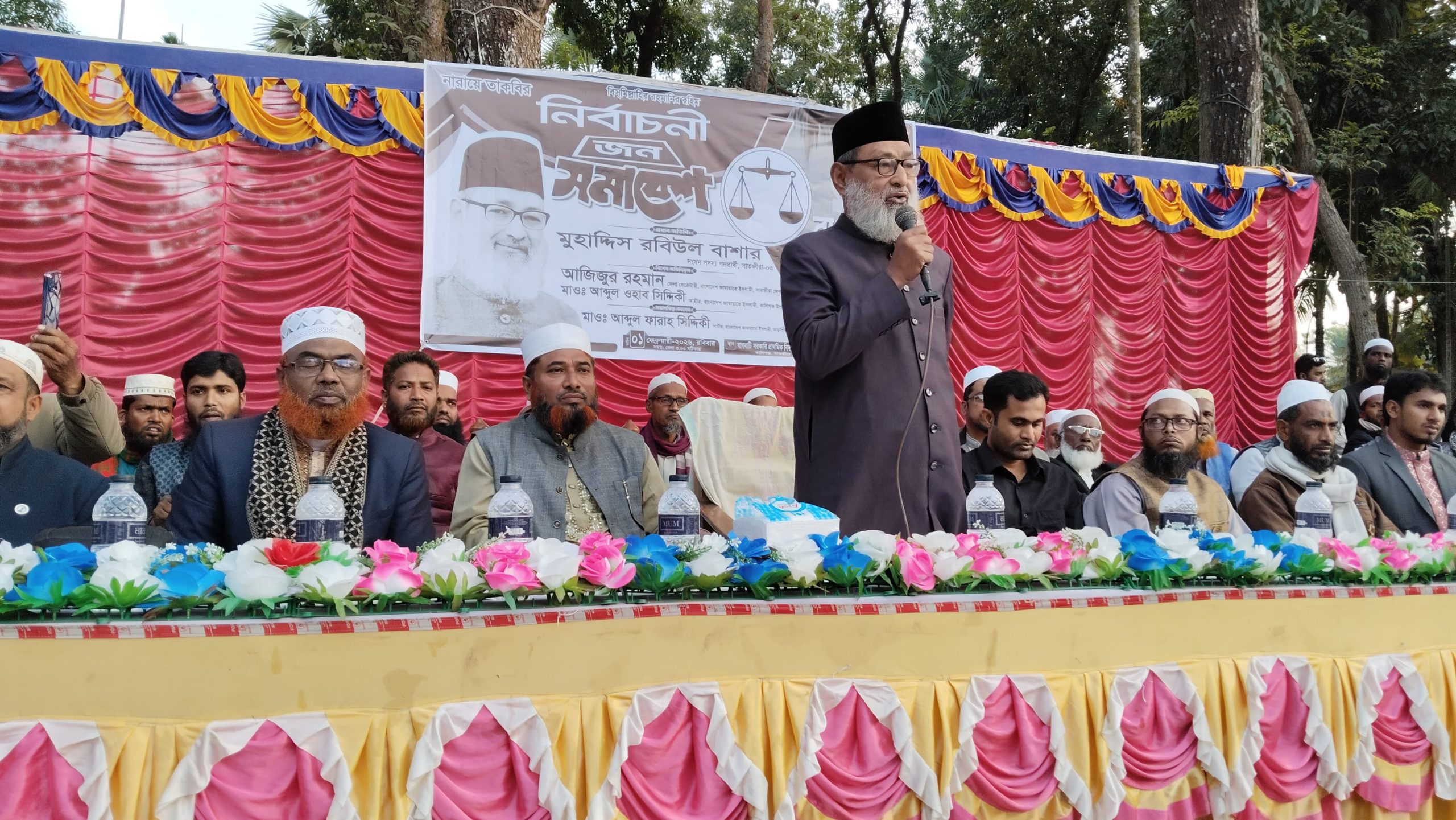 রবিবার (০১ ফেব্রুয়ারি ) সকাল থেকে কালিগঞ্জ বাস স্ট্যান্ড সংলগ্ন বাজারে গণসংযোগ, পূর্ব নারায়নপুর হিন্দু সমাবেশ, বিকালে বাগবাটি দাখিল মাদ্রাসা মাঠ প্রাঙ্গনে মহিলা সমাবেশ ও বাগবাটি প্রাইমারি স্কুল মাঠে নির্বাচনীয় জনসভা এবং সন্ধ্যায় নলতা ইউনিয়ন শ্রমিক কল্যাণ ফেডারেশনের উদ্যোগে খানজিয়া মাধ্যমিক বিদ্যালয় এর মাঠে শ্রমিক সমাবেশ অনুষ্ঠিত হয়।এসময় প্রধান অতিথি হিসেবে উপস্থিত ছিলেন সাতক্ষীরা-৩ সংসদীয় আসন (আশাশুনি–কালিগঞ্জ)বাংলাদেশ জামায়াতে ইসলামী মনোনীত এমপি প্রার্থী মুহাদ্দিস রবিউল বাশার।এ সময় তিনি বলেন নেতৃত্বের পরিবর্তন হলেও নীতি ও আদর্শের পরিবর্তন হয়নি। দেশের অর্থ বিদেশে পাচার হয়েছে, দুর্নীতিতে দেশ চ্যাম্পিয়ন হয়েছে—যা জাতি হিসেবে আমাদের জন্য চরম লজ্জার।“আপনারা অতীতে বাংলাদেশ জামায়াতে ইসলামীকে সরকারের দুইটি মন্ত্রণালয় পরিচালনা করতে দেখেছেন। সুজলা-সুফলা এই দেশের সার্বভৌমত্ব, উন্নয়ন ও নাগরিক অধিকার নিশ্চিত করতে সব দল-মত ভুলে বাংলাদেশ জামায়াতে ইসলামীর দাড়িপাল্লা প্রতীকে ভোট দিয়ে সৎ ও যোগ্য নেতৃত্ব বেছে নিন। বিশেষ অতিথি হিসেবে উপস্থিত ছিলেন সাতক্ষীরা জেলা জামায়াতে সেক্রেটারি মাওলানা আজিজুর রহমান, সাতক্ষীরা জেলা জামায়াতে শুরা ও কর্মপরিষদ সদস্য মাওলানা আবু বকর সিদ্দিক , সাতক্ষীরা জেলা শ্রমিক কল্যাণ ফেডারেশনের সেক্রেটারি মোঃ আব্দুল গফফার, বাংলাদেশ ইসলামী ছাত্রশিবিরের সাতক্ষীরা জেলা শাখার সেক্রেটারি নাজমুল হাসান,কালিগঞ্জ উপজেলা জামায়াতের আমির মাওলানা আব্দুল ওহাব সিদ্দিকী, কালিগঞ্জ উপজেলা জামায়াতের সেক্রেটারি অধ্যাপক আব্দুর রউফ, কালিগঞ্জ উপজেলা শুরা ও কর্মপরিষদ সদস্য আবু ইসলাম, কালিগঞ্জ উপজেলা জামায়াতের সহকারী সেক্রেটারী মাওলানা আনোয়ারুল ইসলাম,কালিগঞ্জ উপজেলা শ্রমিক কল্যাণ ফেডারেশনের সেক্রেটারি শহিদুল ইসলাম ঢালী,ভাড়াশিমলা ইউনিয়ন জামায়াতের আমির আব্দুল ফারাহ সিদ্দিক,কালিগঞ্জ উপজেলা যুব জামায়াতের সেক্রেটারি ও ইউপি সদস্য জামাল ফারুকসহ,দলটির উপজেলা ও ইউনিয়নের বিভিন্ন পর্যায়ে দায়িত্বশীল,কৃষক,শ্রমিক,কর্মীও নেতৃবৃন্দ এবং বিভিন্ন প্রিন্ট ও ইলেকট্রনিক মিডিয়ার সাংবাদিকবৃন্দ।