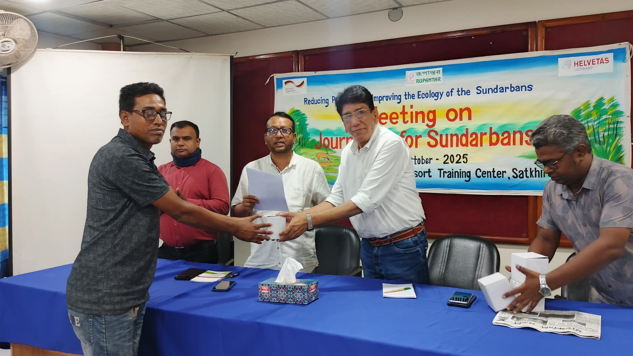 রূপান্তর-এর কার্যালয়ে এক আড়ম্বরপূর্ণ অনুষ্ঠানে সংগঠনের পরিচালক শাহাদত হোসেন বাচ্চু শ্যামনগর উপকূলীয় প্রেসক্লাবের সভাপতি মোঃ আব্দুল হালিমের হাতে এই সম্মাননা স্মারক তুলে দেন।