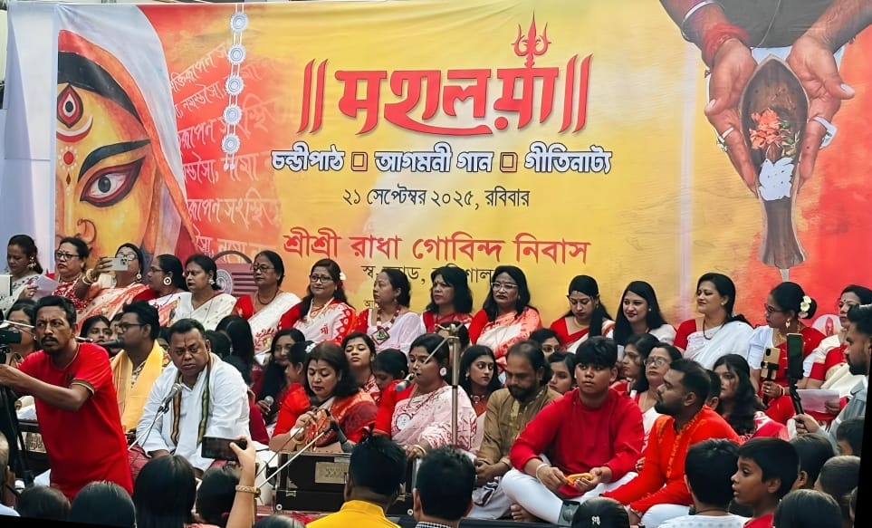 মহালয়া অনুষ্ঠানে চণ্ডীপাঠের সঙ্গে আবাহনী সংগীত পরিবেশন করেন শ্রী কমল ঘোষসহ অন্যান্য শিল্পীরা। তাদের সমবেত কন্ঠে উচ্চারিত হয়...