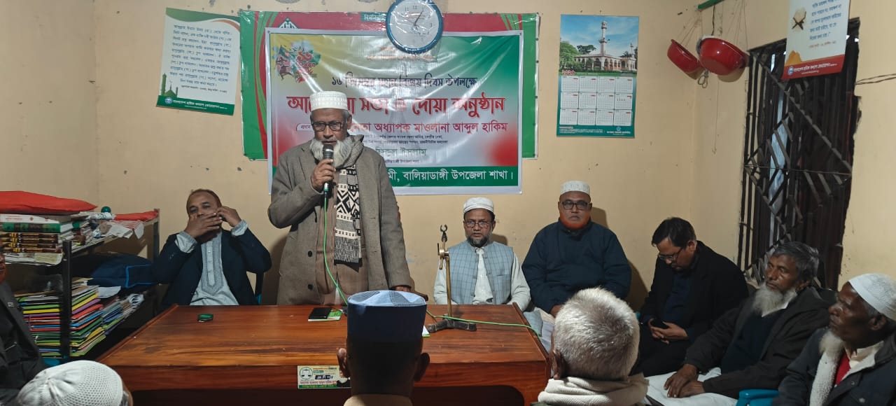 বাংলাদেশ জামায়াতে ইসলামী বালিয়াডাঙ্গী উপজেলা শাখার উদ্যোগে ১৬ই ডিসেম্বর মহান বিজয় দিবস উপলক্ষে এক দোয়া ও আলোচনা সভা অনুষ্ঠিত হয়েছে। বিজয়ের চেতনা ও স্বাধীনতার আদর্শকে স্মরণ করে আয়োজিত এ অনুষ্ঠানে প্রধান অতিথি হিসেবে উপস্থিত ছিলেন ঠাকুরগাঁও জেলা জামায়াতে ইসলামীর সাবেক জেলা আমির, কেন্দ্রীয় নেতা ও বর্ষীয়ান রাজনীতিবিদ জননেতা আলহাজ্ব মাওলানা আব্দুল হাকিম।