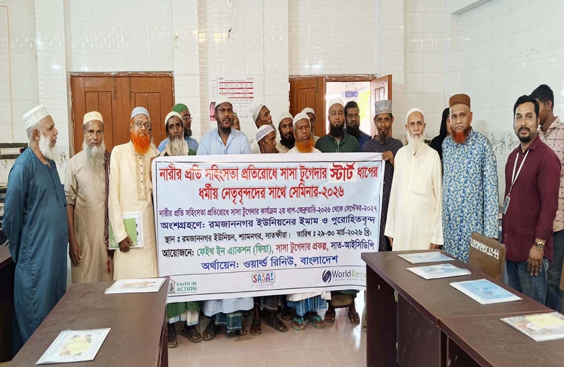 ২৯ শে মার্চ ( রবিবার) সকাল ৯টায় সাতক্ষীরার শ্যামনগর উপজেলার রমজাননগর ইউনিয়ন পরিষদ হল রুমে ফেইথ ইন এ্যাকশন ( ফিয়া ) , সাসা টুগেদার প্রকল্প , সাত আইসিডিপির আয়োজনে , ওয়ার্ল্ড রিনিউ বাংলাদেশের অর্থায়নে রমজাননগর ইউনিয়নের ইমাম ও পুরোহিতবৃন্দের অংশ গ্রহনে নারীর প্রতি সহিংসতা প্রতিরোধে সাসা টুগেদার স্টার্ট ধাপের ধর্মীয় নেতৃবৃন্দদের সাথে সেমিনার- ২০২৬ , নারীর প্রতি সহিংসতা প্রতিরোধে সাসা টুগেদার কার্যক্রম ২য় ধাপ ফেব্রুয়ারি ২০২৬ থেকে সেপ্টেম্বর ২০২৭ অনুষ্ঠিত হয়েছে। উক্ত অনুষ্টানটি উদ্বোধন ঘোষনা করেন রমজাননগর ইউনিয়ন পরিষদের প্যানেল চেয়ারম্যান আলহাজ¦ শেখ জাহাঙ্গীর আলম। এ সময় উপস্থিত ছিলেন ফেইথ ইন এ্যাকশন সাত আইসিডিপির প্রকল্প ব্যবস্থাপক শমূয়েল সাংমা , সুন্দরবন ছায়া শ্রমজীবি সমবায় সমিতি লিঃ এর সভাপতি সুষমা রানী মন্ডল , সম্পাদিকা শরিফা খাতুন । সেমিনার অনুষ্টানটি পরিচালনা করেন মাঠ সংগঠক দিপক দাশ।