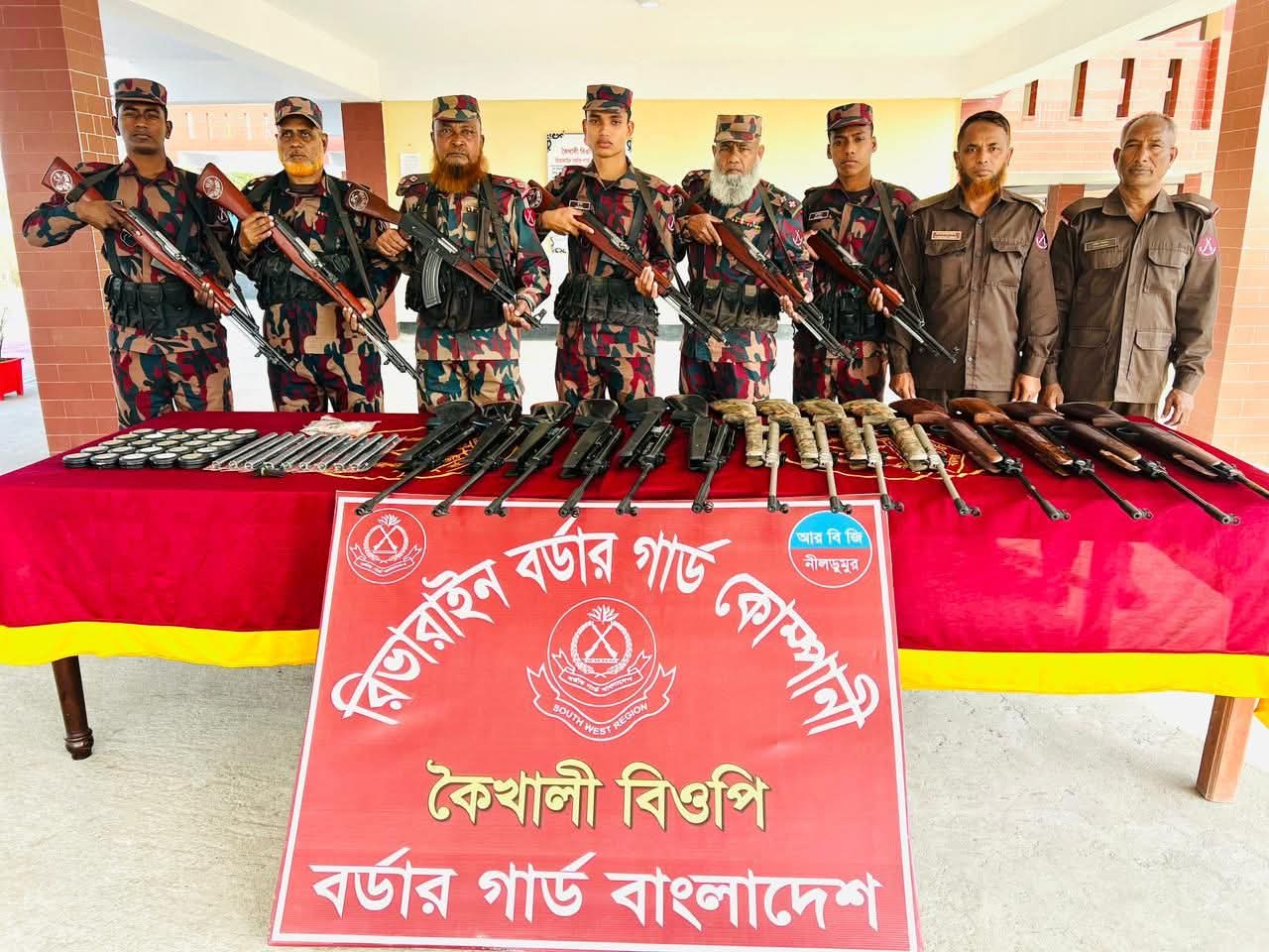 সাতক্ষীরার শ্যামনগর উপজেলার কৈখালী সীমান্তে বিশেষ অভিযান চালিয়ে ভারত থেকে পাচার হয়ে আসা বিপুল পরিমাণ আগ্নেয়াস্ত্র ও সরঞ্জামাদি উদ্ধার করেছে রিভারাইন বর্ডার গার্ড কোম্পানি (বিজিবি)। অভিযানে ১৪টি অত্যাধুনিক এয়ারগান, বিপুল পরিমাণ সিসার গুলি (পেলেট) এবং গান কেস জব্দ করা হয়।