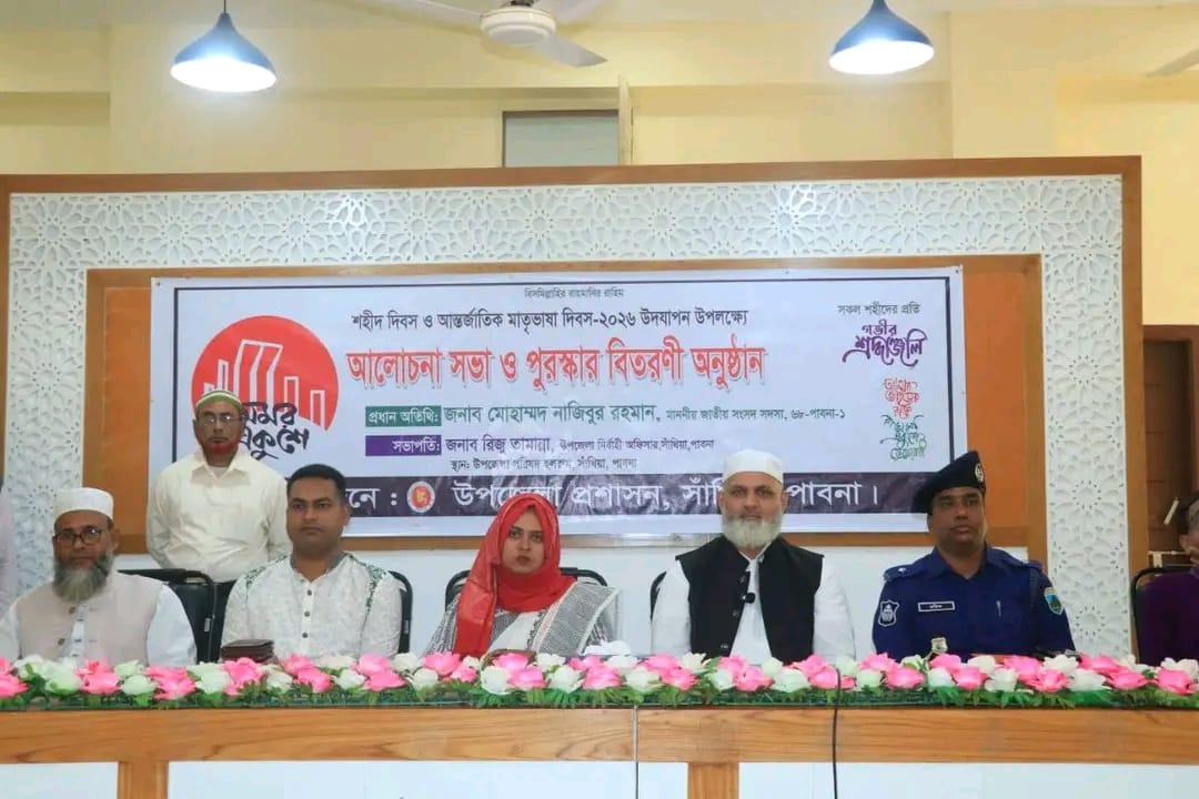 পাবনার সাঁথিয়া উপজেলা-এ উপজেলা প্রশাসনের উদ্যোগে যথাযোগ্য মর্যাদায় শহীদ দিবস ও আন্তর্জাতিক মাতৃভাষা দিবস–২০২৬ উপলক্ষে আলোচনা সভা ও দোয়া মাহফিল অনুষ্ঠিত হয়েছে।