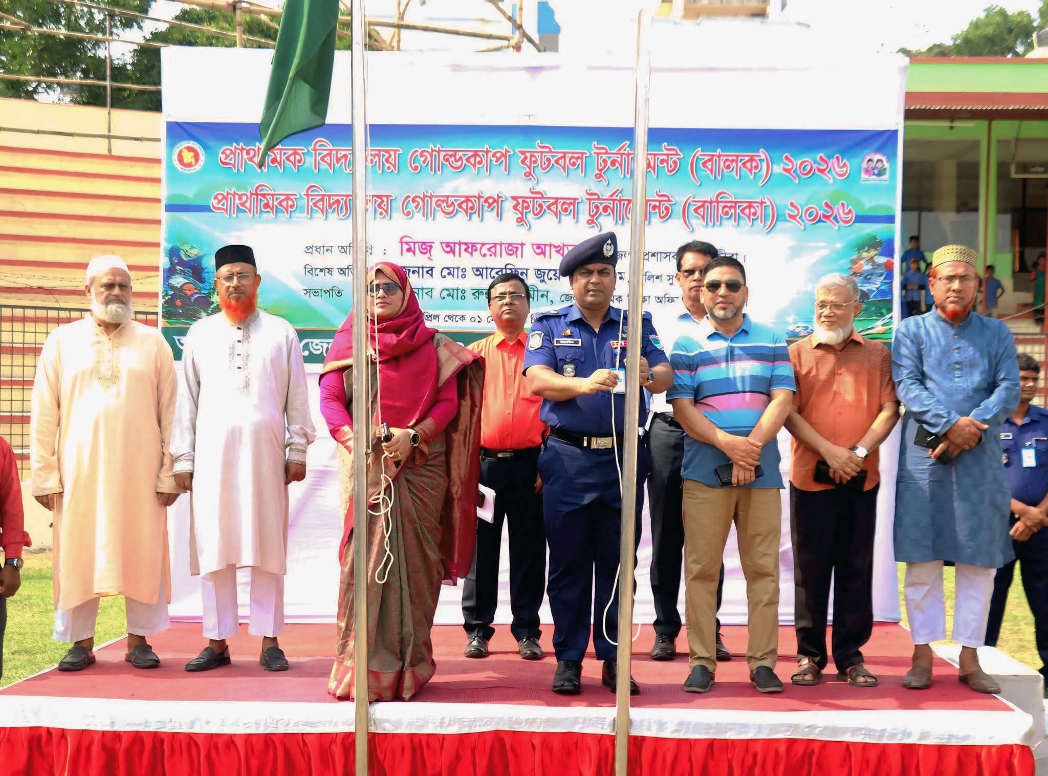 জাতীয় পতাকা উত্তোলন এবং আকাশে বর্ণিল বেলুন ও ফেস্টুন উড়িয়ে প্রতিযোগিতার শুভ উদ্বোধন ঘোষণা করেন সাতক্ষীরার জেলা প্রশাসক মিজ্ আফরোজা আখতার এবং জেলা পুলিশ সুপার জনাব মোঃ আরেফিন জুয়েল, বিপিএম।