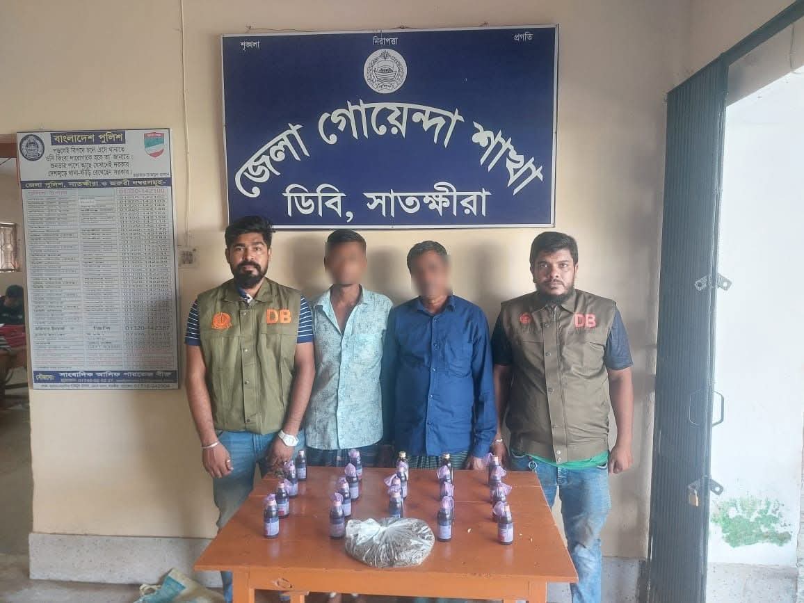 সাতক্ষীরা জেলা গোয়েন্দা শাখা (ডিবি) কর্তৃক মাদকবিরোধী অভিযানে ২০ (বিশ) বোতল কোরেক্স সিরাপ ও ৫০০ গ্রাম গাঁজা সহ ০২ জন গ্রেফতার:
