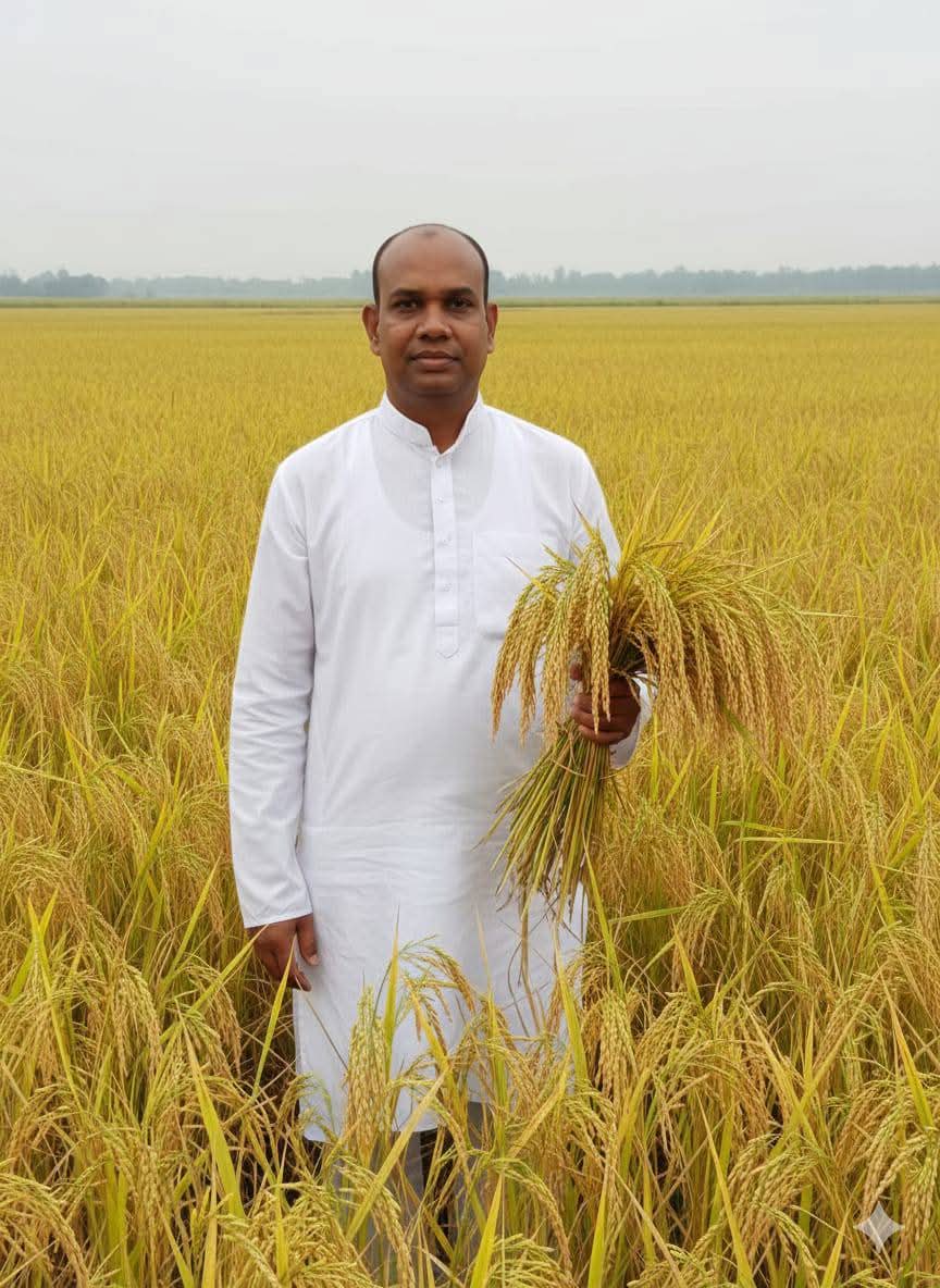 ক্ষেতের ধান হাতে নিয়ে সাধারণ মানুষের পাশে দাঁড়ানোর মাধ্যমে তিনি প্রমাণ করছেন মানবিক ও কৃষিবান্ধব নেতৃত্বের উদাহরণ।