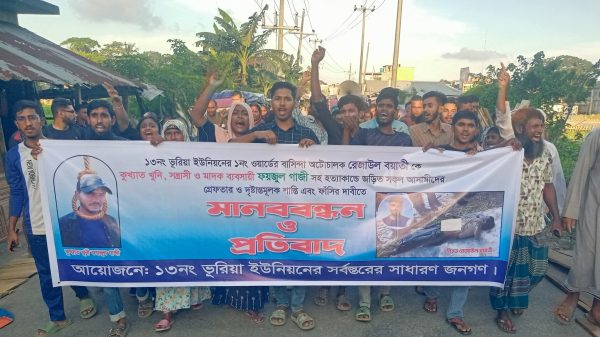 পটুয়াখালীতে অটো চালক রেজাউল হত্যাকারীদের বিচার ও ফাঁসির দাবিতে বিক্ষোভ মিছিল —
