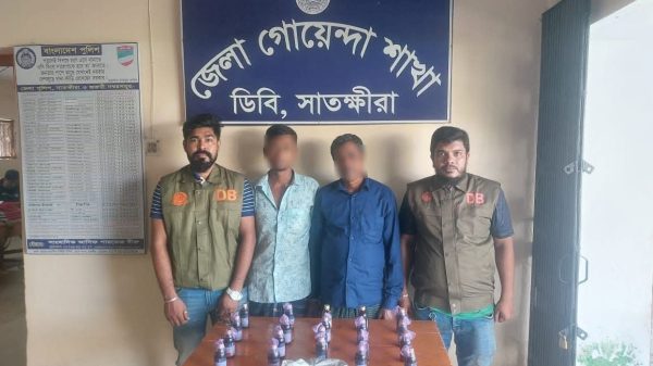 সাতক্ষীরা জেলা গোয়েন্দা শাখা (ডিবি) কর্তৃক মাদকবিরোধী অভিযানে ২০ (বিশ) বোতল কোরেক্স সিরাপ ও ৫০০ গ্রাম গাঁজা সহ ০২ জন গ্রেফতার: