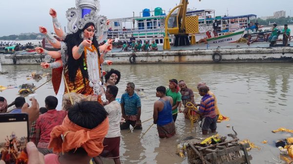 দ্বিতীয় দিনেও ঘাটে ঘাটে প্রতিমা নিরঞ্জন হলেও , পূজো উদ্যোক্তারা খুশি নয় ।