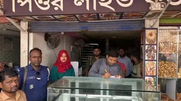 সাঁথিয়ায় পিওর লাইভ ফুড বেকারি এন্ড পেস্ট্রি দোকানে ভ্রাম্যমান আদালতের জরিমানা