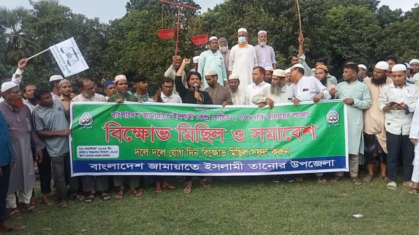 তানোর উপজেলায় জামায়াতের কেন্দ্র ঘোষিত পাঁচ দফা দাবি নিয়ে মিছিল ও বিক্ষোভ সমাবেশ।