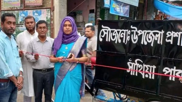 সাঁথিয়ার আতাইকুলা বাজারে ময়লা ফেলার ভ্যান প্রদান করলেন( ইউএনও) রিজু তামান্না।