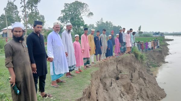 বকশীগঞ্জে নদী ভাঙন রোধে মানববন্ধন