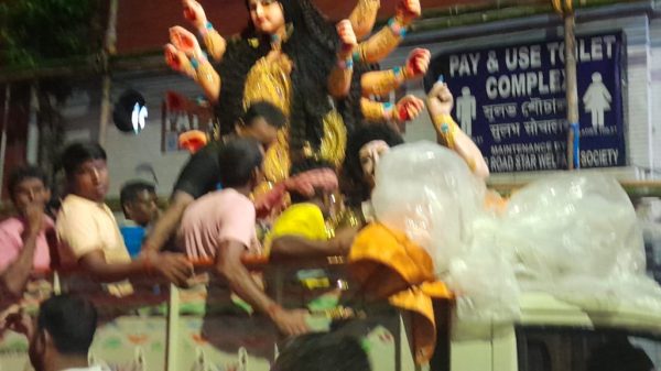 মহালয়ার পূর্ণ লগ্নে-প্রতিমা নিয়ে যেতে ব্যস্ত উদ্যোক্তারা -গ্রাম থেকে শহরে ও ভিন রাজ্যে।