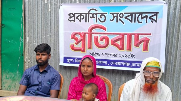 ভুক্তভোগী পরিবারের সংবাদ সম্মেলন ও প্রতিবাদ: ‘আমরা নির্দোষ, আমাদের নাম মিথ্যা মামলায় জড়ানো হয়েছে’